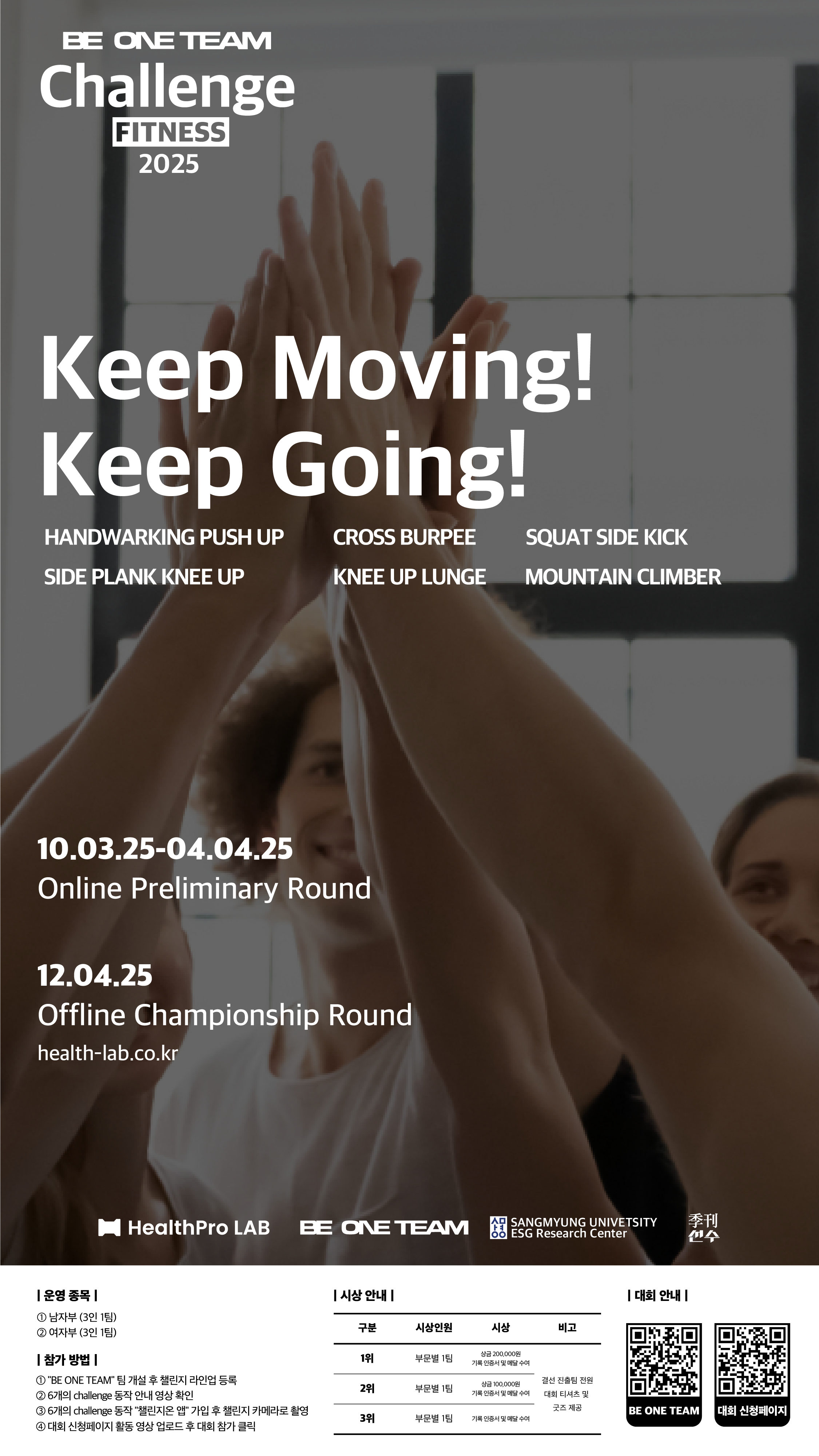 Be one team challenge 참여시 제출한 영상은 대회 운영 및 홍보자료에 활용될 수 있습니다.